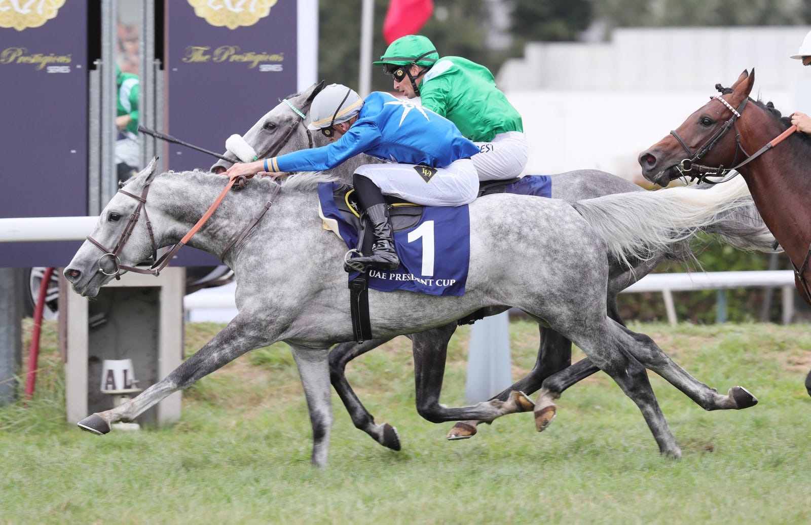 De door UAE met 200.000 euro gesponsorde race voor Arabische volbloeden, ging naar de in Frankrijk getrainde Al Zeer (1) met jockey Luka Delozier.