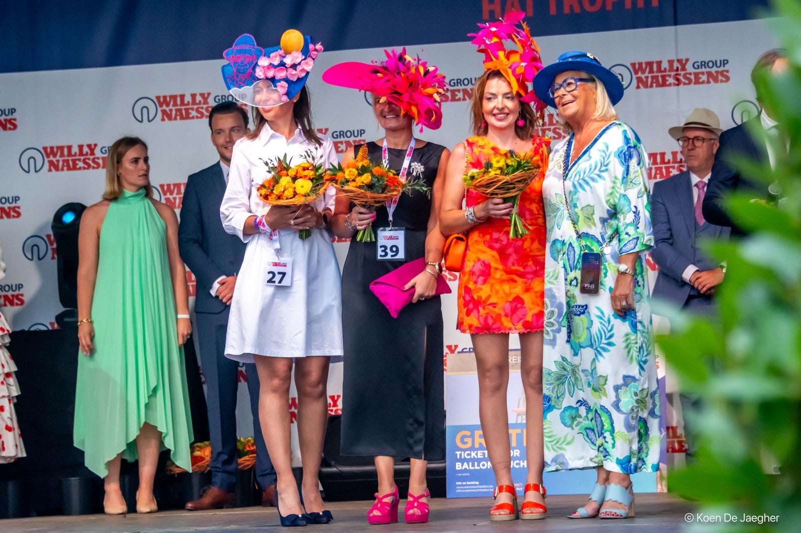 De traditionele hoedenwedstrijd ontbrak niet op het programma, voor het eerst zonder Willy Naessens, maar met Marie-Jeanne. Winnares werd kandidate nummer 44 Magali Devacht, hier naast Marie-Jeanne en de eredames.