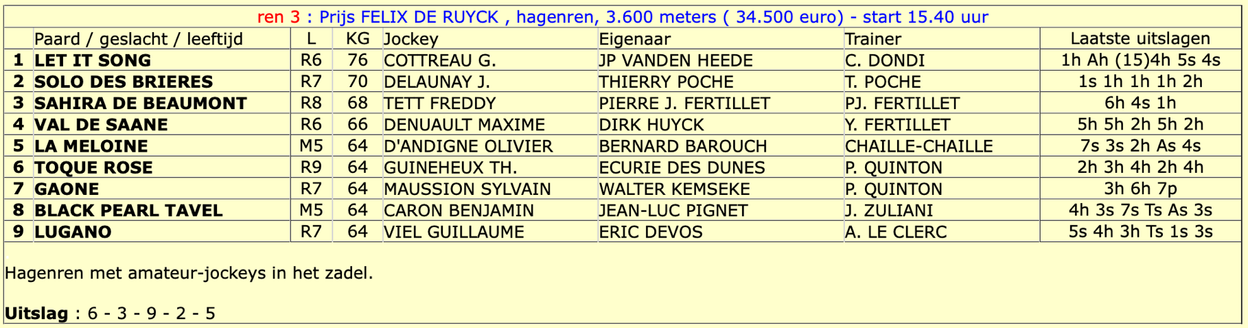 Ook de hagenkoers werd gewonnen door een paard van Ecurie des Dunes : Toque Rose