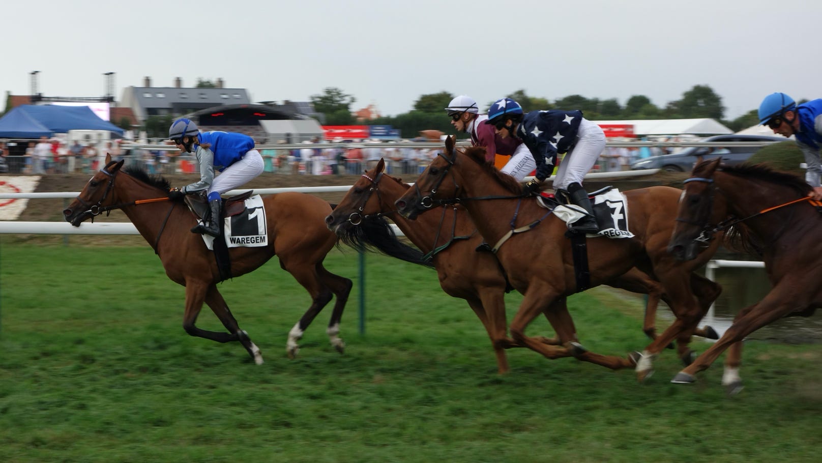 Ook de 2e reeks van de Grote Steeple ontsnapte dit jaar aan Patrice Quinton. Gard Feel (1) met jockey Anthony Renard en trainer Jerome Delaunay nam vroeg in de wedstrijd de leiding om deze niet meer af te geven. Flavius (verborgen op de foto) werd tweede voor Hulapalu (4), beide paarden behaalden ook in 2021 ereplaatsen in Waregem.